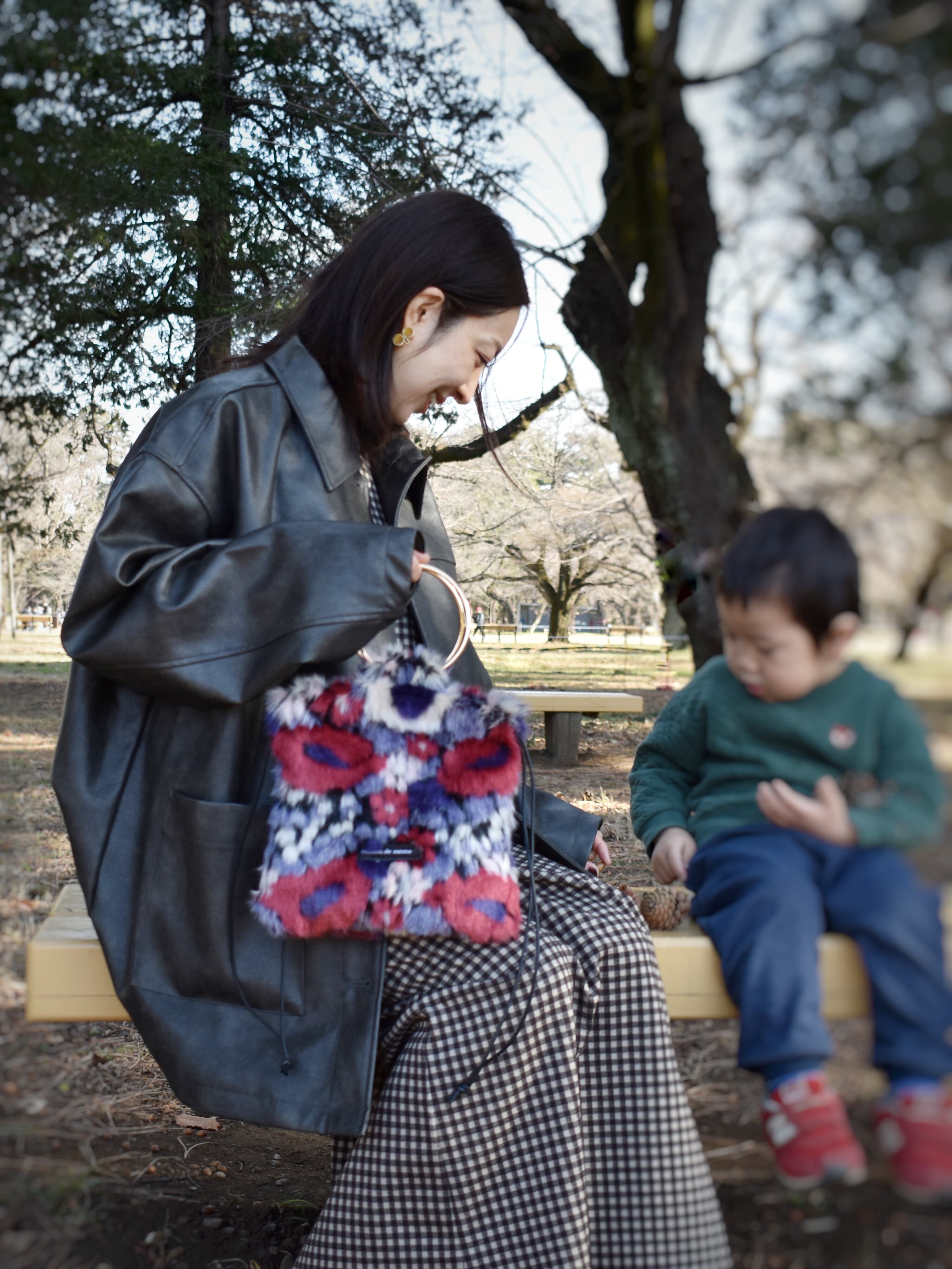 リングハンドルの素材感がエレガントで、装いにほどよい存在感を添えます。