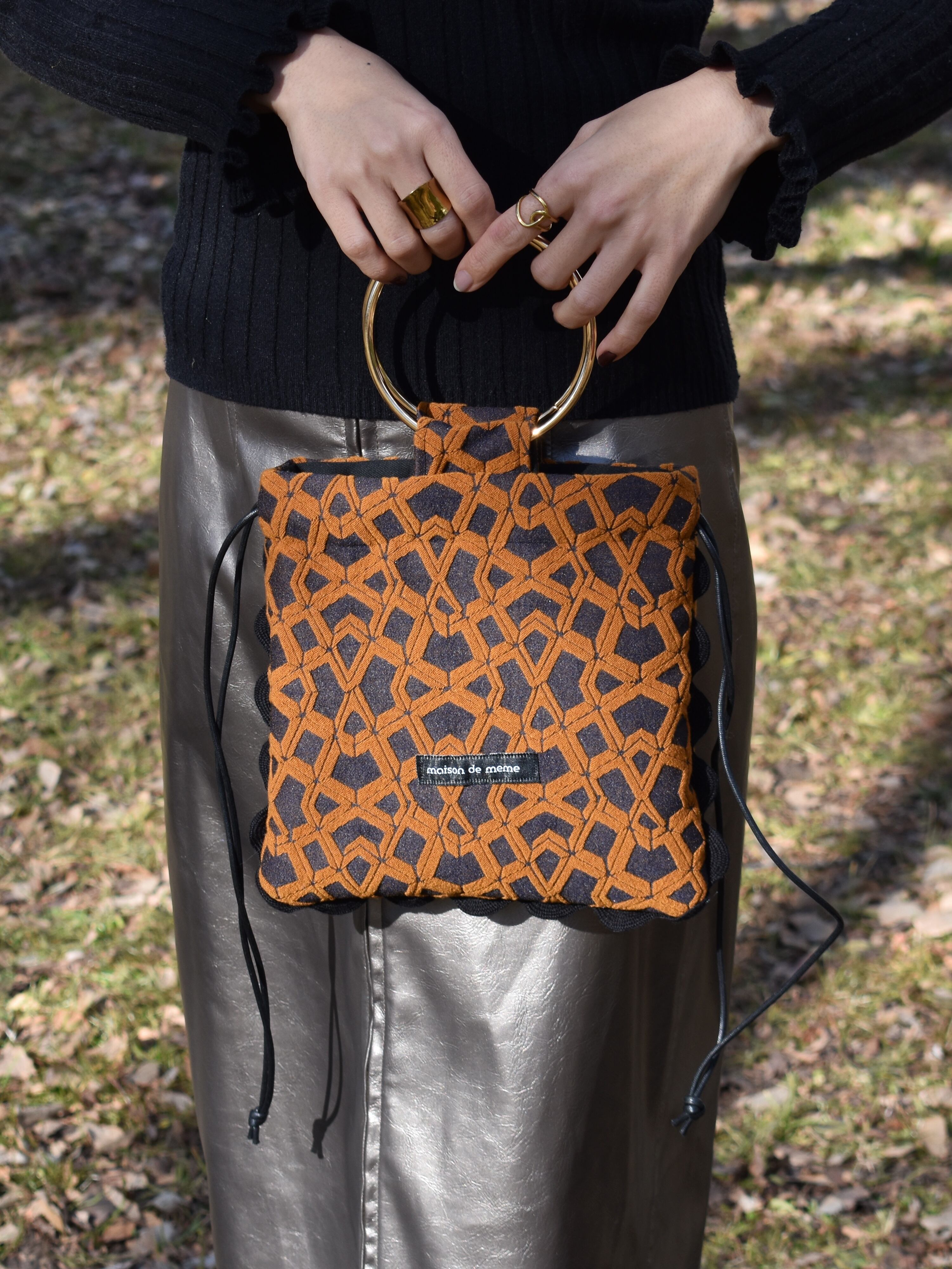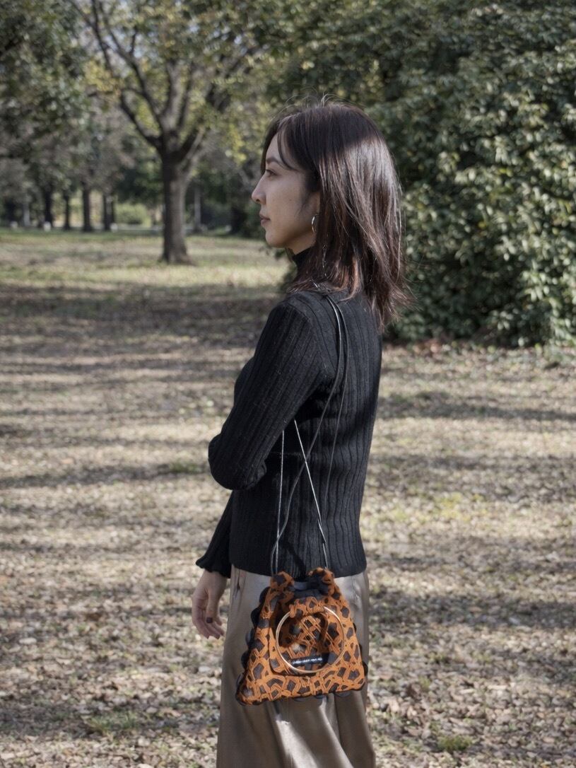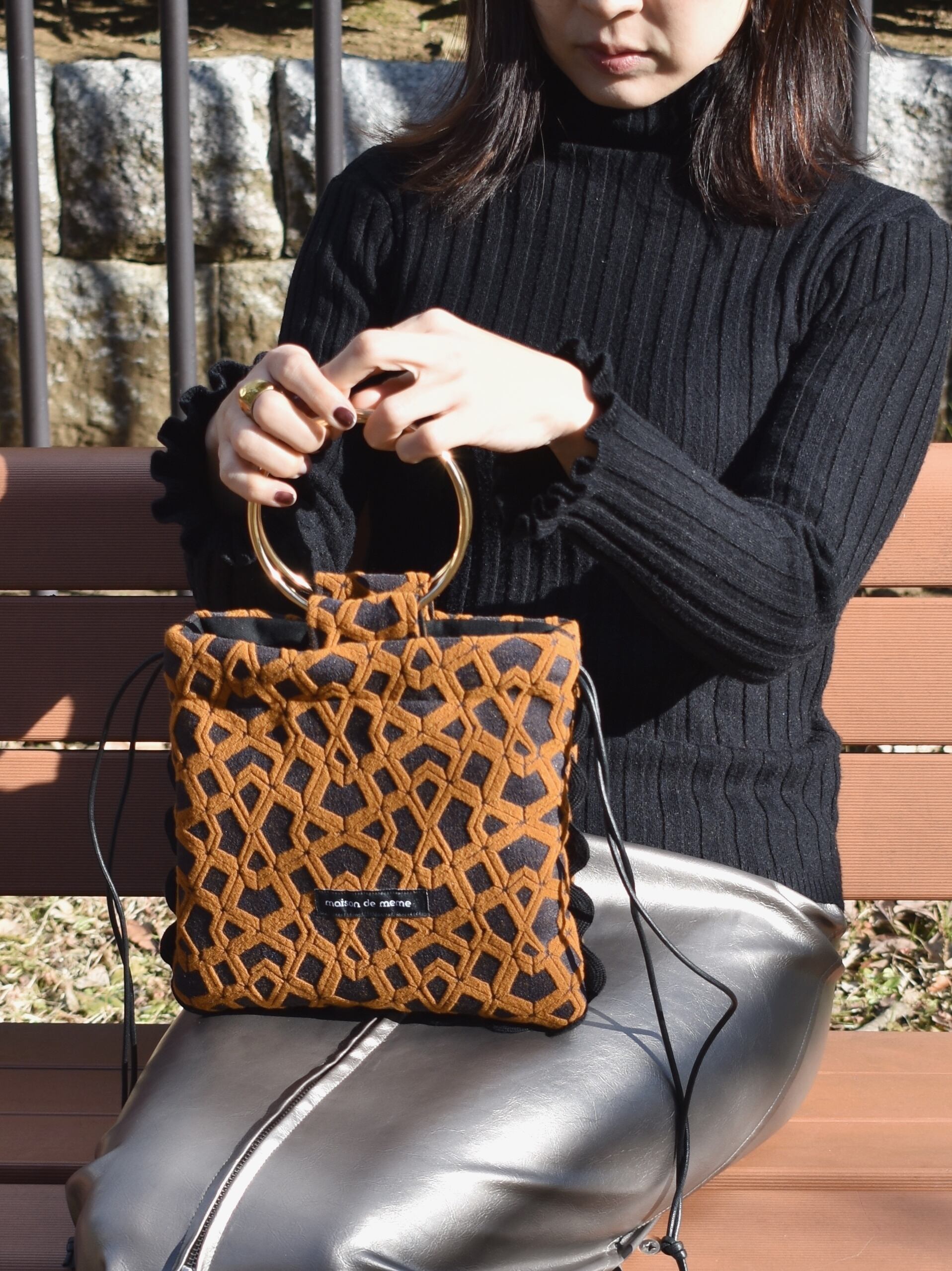 リングハンドルの素材感がエレガントで、装いにほどよい存在感を添えます。