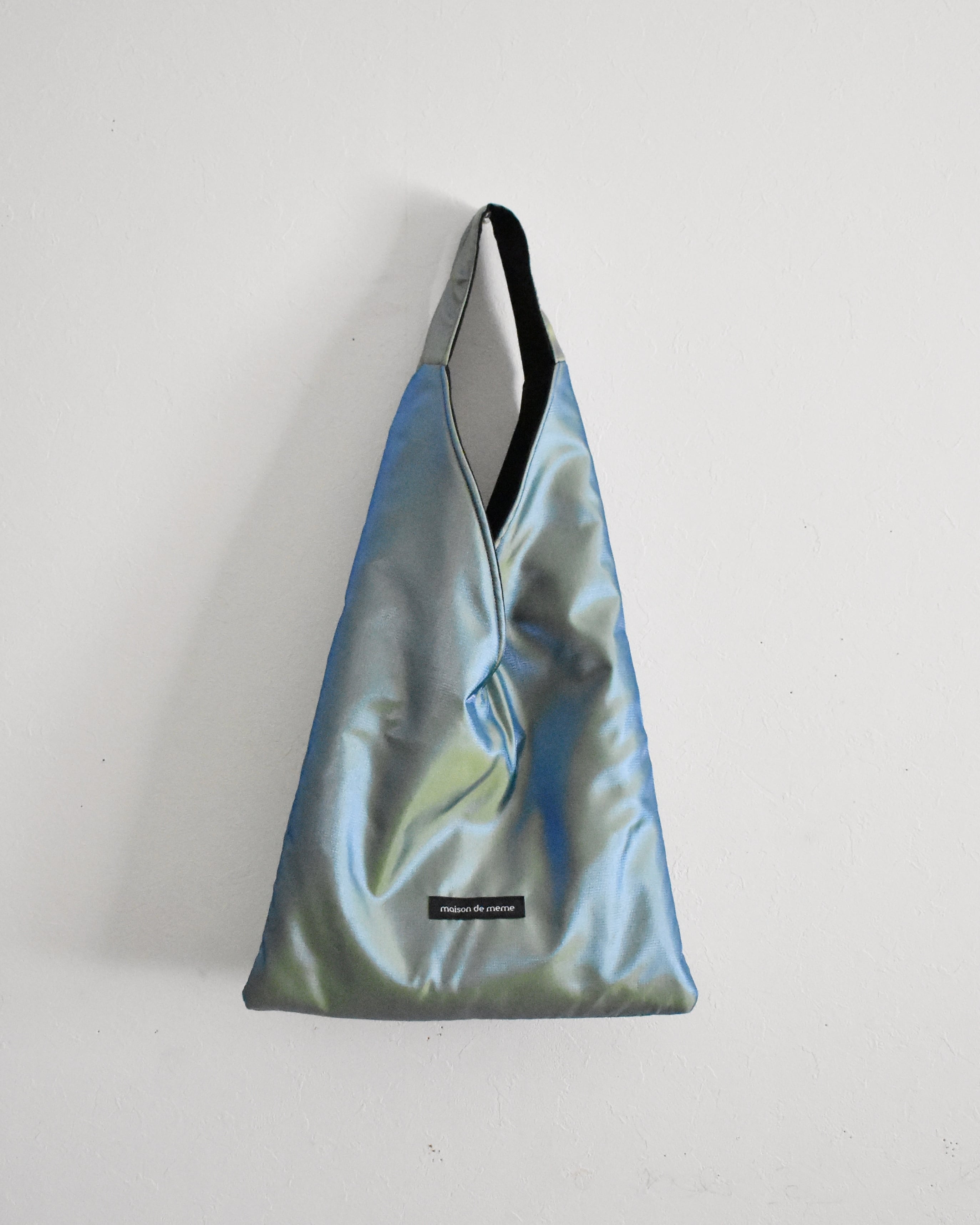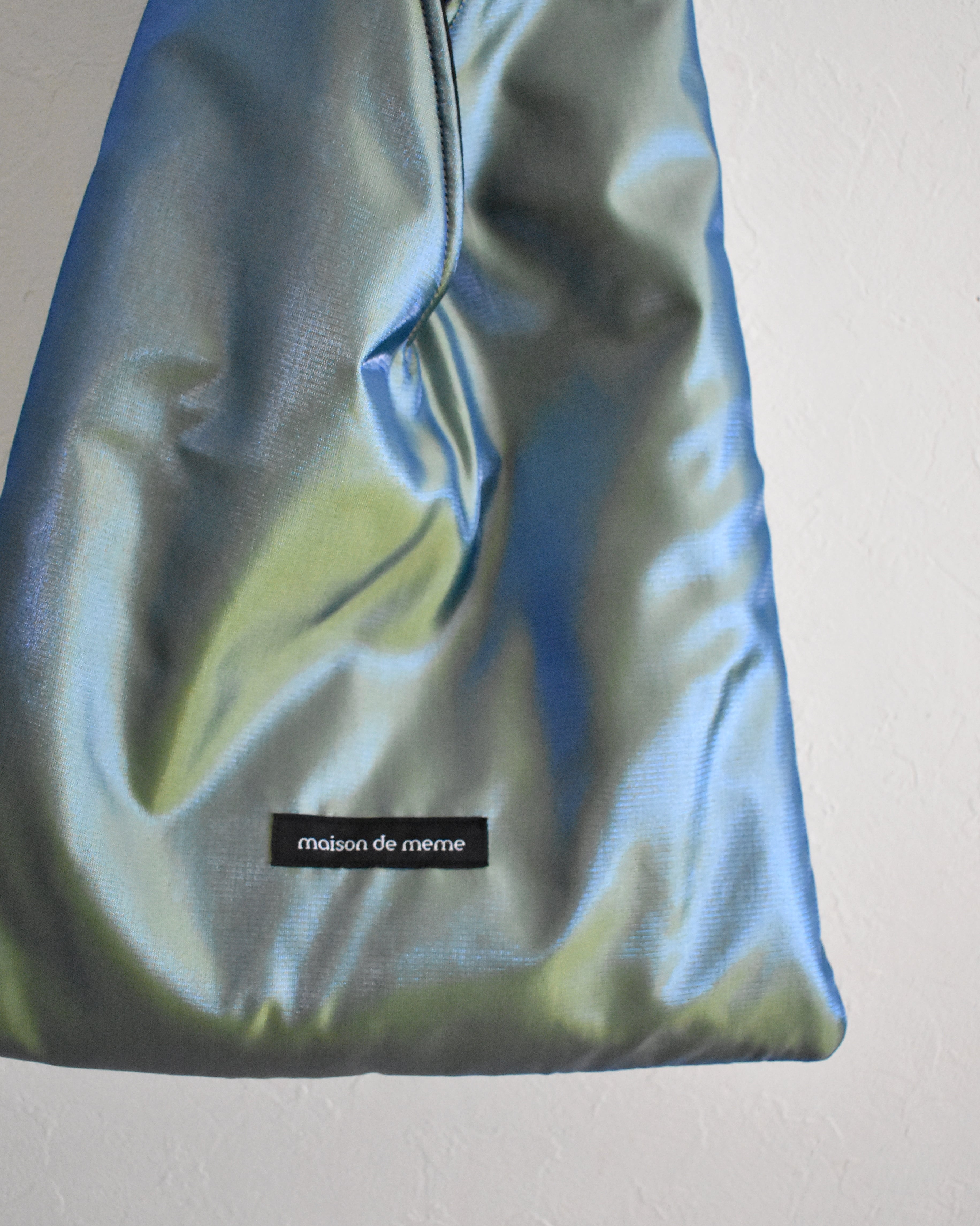 明るさや角度によって色がかわる偏光サテンでお作りしました。黄色の地に、青い糸のかけられた生地は、これから訪れる温かい季節の予感のようです。