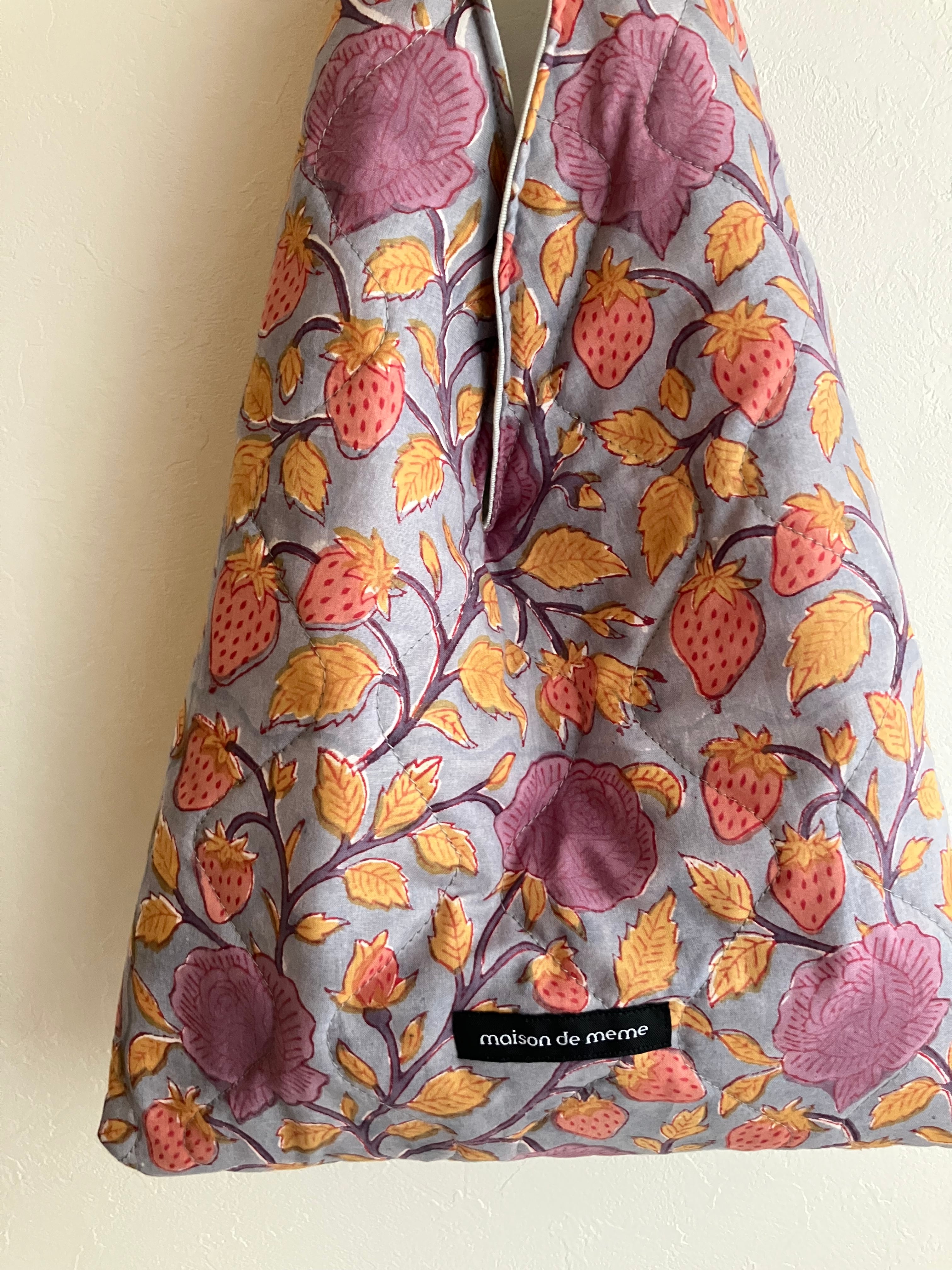 綿を挟んでキルティングした生地は、ふわりとやわらかく、軽やかな持ち心地に仕上げました。