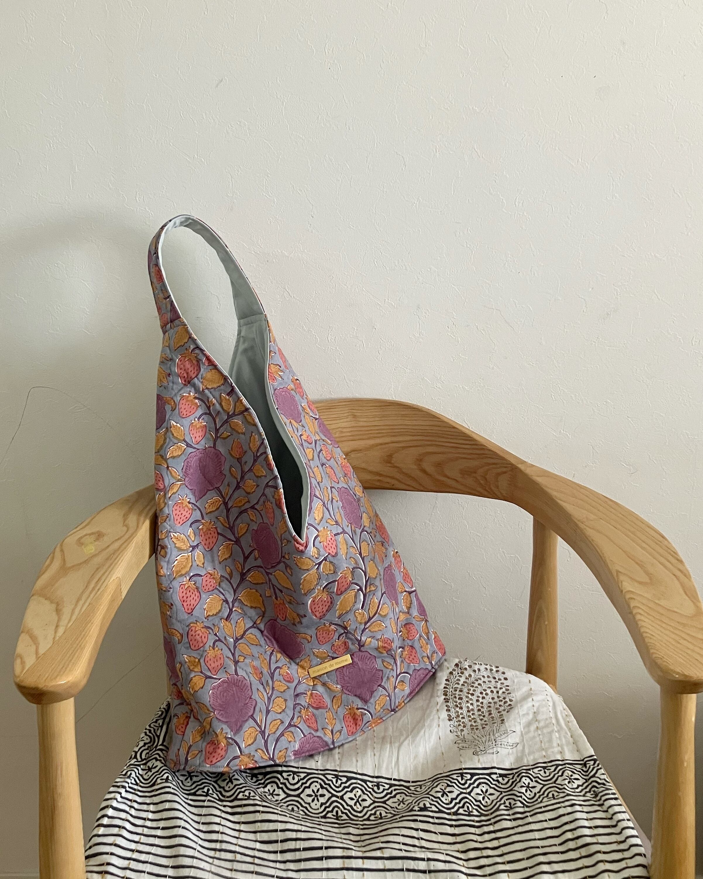 綿を挟んでキルティングした生地は、ふわりとやわらかく、軽やかな持ち心地に仕上げました。