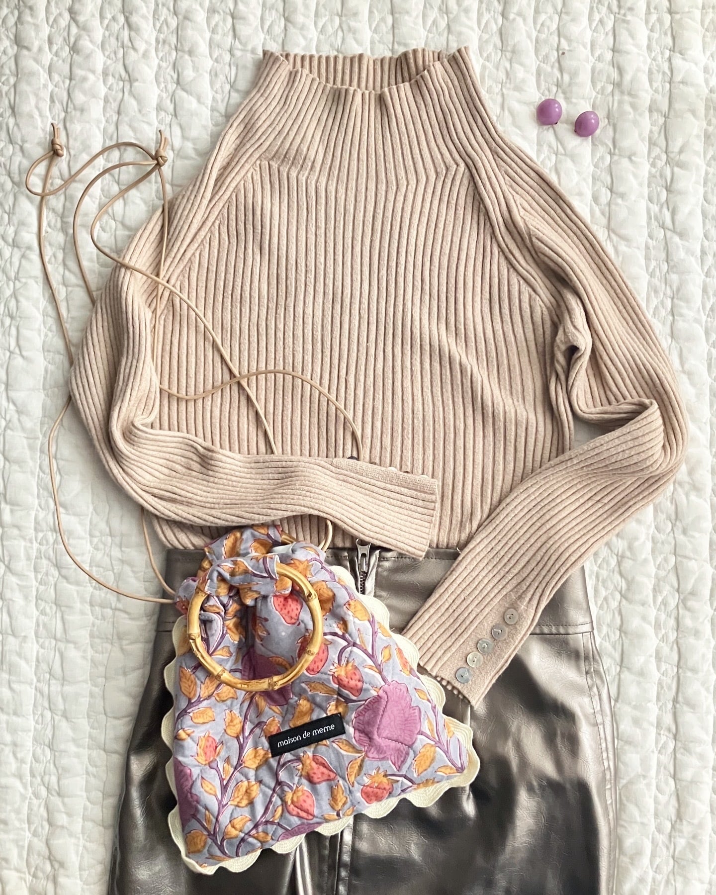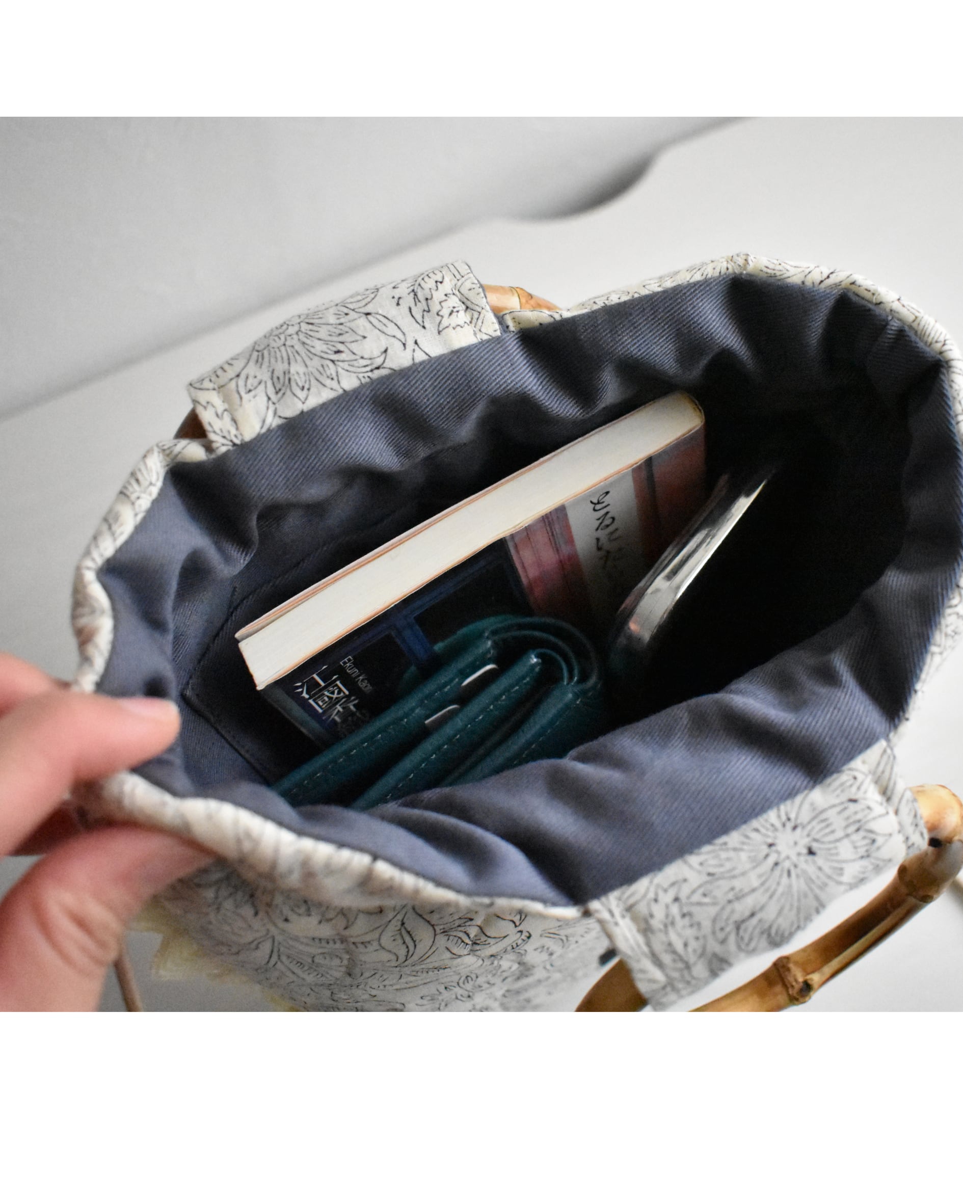 小さなバンブーのリングハンドルが、さりげないアクセントに。
