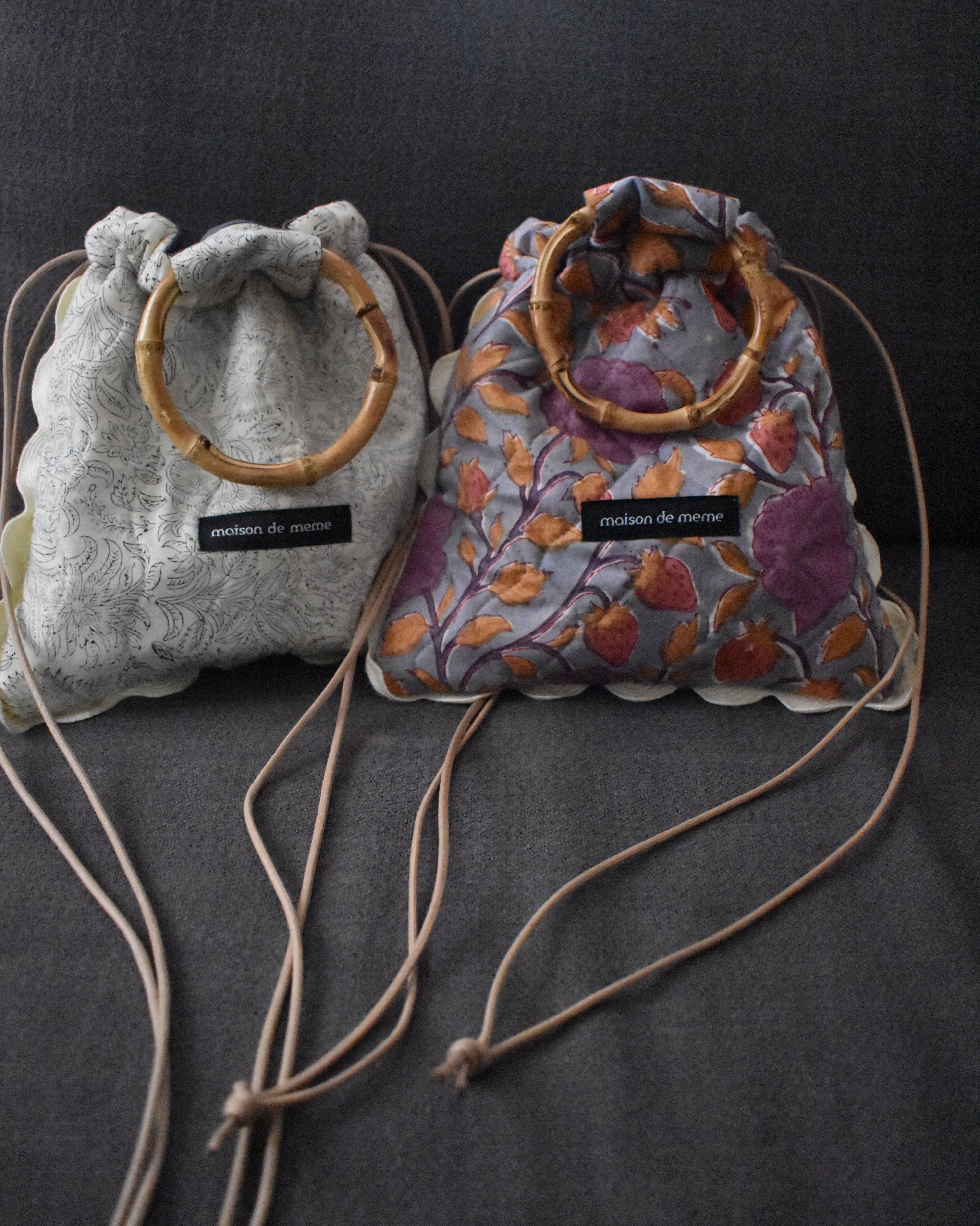 綿を挟んでキルティングした生地は、ふわりとやわらかく、軽やかな持ち心地に仕上げました。
