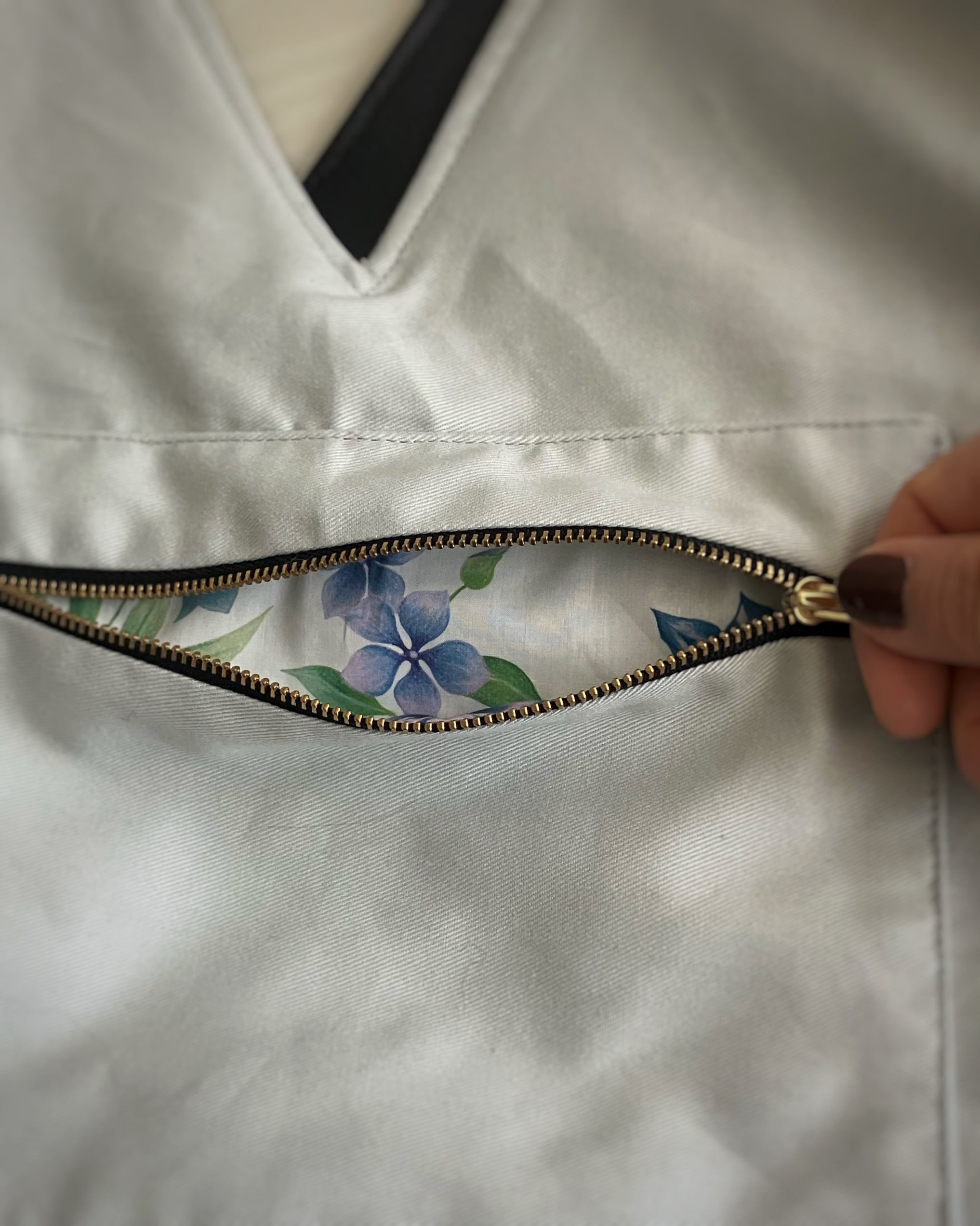 内側には、リバティプリントをあしらったポケット。