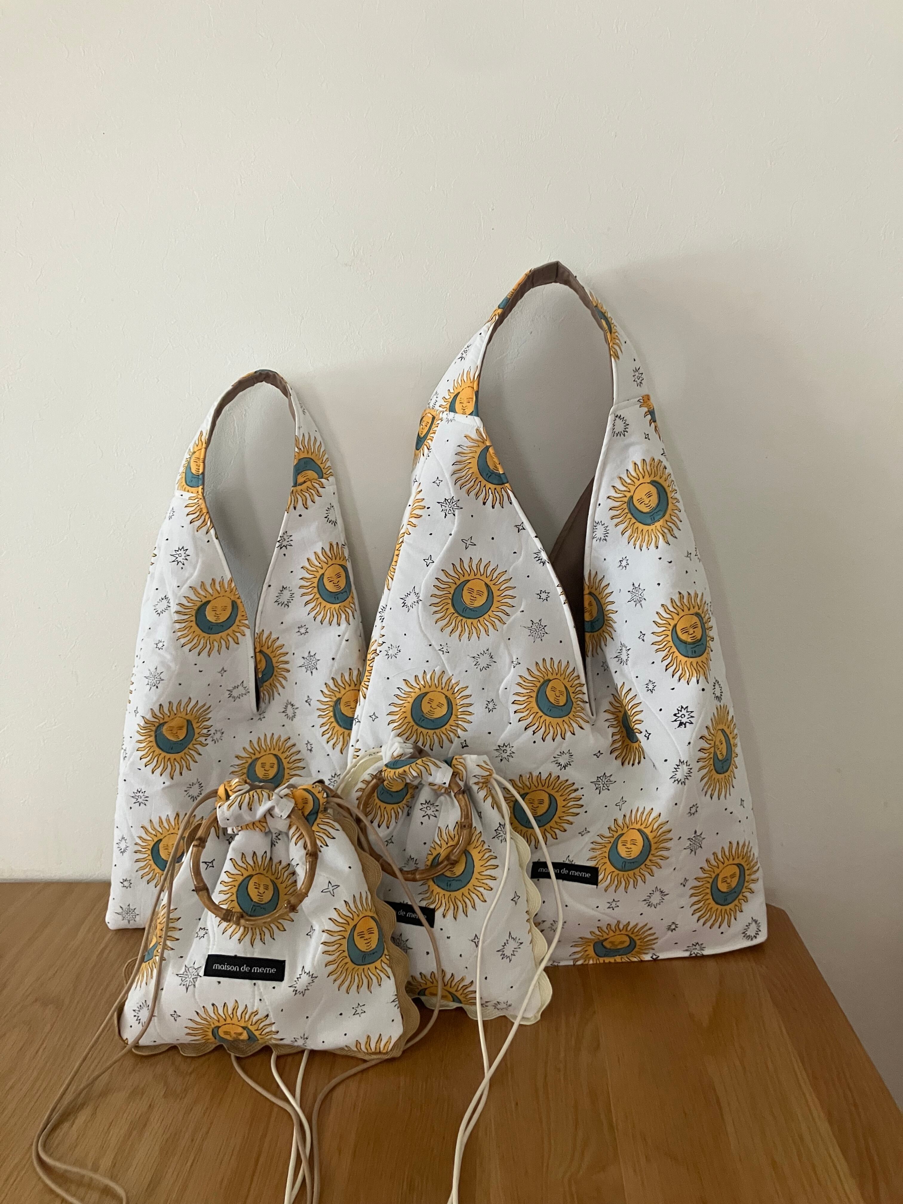 太陽と月のモチーフが連なったこの生地。